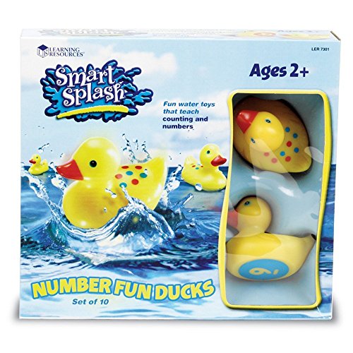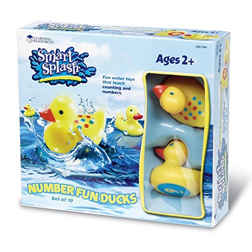 Enjoy watching your toddlers splash around using the Learning Resources Smart Splash Number Fun Ducks. These adorable ducks are made of mold-resistant plastic and feature colorful dots on their backs with matching numbers on their bellies. This set teaches number and color recognition. A reusable mesh bag is included. Recommended for ages two to five years. About Learning Resources A leading manufacturer of innovative, hands-on educational materials and learning toys, Learning Resources has been teaching children through play in the classroom and the home for over 25 years. They are a trusted source for educators and parents who want quality, award-winning educational products. Their diverse product line of over 1300 products serves children and their families, kindergarten, primary, and middle school markets focused on the areas of mathematics, science, early childhood, reading, Spanish language learning and teacher resources. Since their founding in 1984, Learning Resources continues to be guided by its mission to develop quality educational products that make learning exciting for children of all ages and abilities. They strive to create hands-on products that build a concrete foundation of skills through exploration, imagination and fun. Bath toy set for number and color recognition. 6 adorable ducks have dots on top and numbers on belly. Made of mold-resistant plastic. Includes a reusable mesh bag. Recommended for ages 2 to 5.