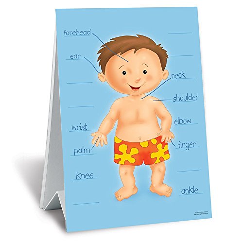 Develop body awareness and vocabulary by using fun bandage magnets to identify parts of the human body. Features write-and-wipe tabletop easel with magnetic front, lines on the back for labeling, and storage pocket. Includes 20 colorful magnetic bandages and Activity Guide.