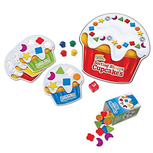 Extend the learning process with the fun game play of the Learning Resources Smart Snacks Shape Sorting Cupcakes Game. This creative game reinforces shape recognition, attributes, matching (visual and tactile discrimination), and following directions. Children roll the die, move the pawns around the cupcake top, and fill in their cupcake puzzle card. Comes with cake mix box, 30 shape cards, four puzzle cards, four pawns, and a large foam die. Recommended for ages three to five years. About Learning Resources A leading manufacturer of innovative, hands-on educational materials and learning toys, Learning Resources has been teaching children through play in the classroom and the home for over 25 years. They are a trusted source for educators and parents who want quality, award-winning educational products. Their diverse product line of over 1300 products serves children and their families, kindergarten, primary, and middle school markets focused on the areas of mathematics, science, early childhood, reading, Spanish language learning and teacher resources. Since their founding in 1984, Learning Resources continues to be guided by its mission to develop quality educational products that make learning exciting for children of all ages and abilities. They strive to create hands-on products that build a concrete foundation of skills through exploration, imagination and fun. Reinforces shape recognition, attributes, and matching. Includes 30 shape cards, 4 puzzle cards, 4 pawns, large foam die. Comes with cake mix box, activity guide, and game board. Recommended for ages 3 years and up. Game board measures 14W x 12.75H in..