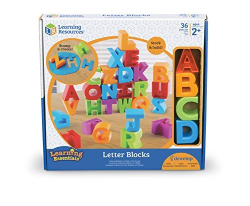 Kids will learn letters, the alphabet, and how to form simple words. Large stackable letters build fine motor skills. Colorful block letters feature flat fronts and open backs for dual use as letter molds. Set includes 2 sets of vowels (all the same color) and a storage bag.