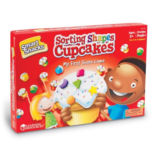 Extend the learning process with the fun game play of the Learning Resources Smart Snacks Shape Sorting Cupcakes Game. This creative game reinforces shape recognition, attributes, matching (visual and tactile discrimination), and following directions. Children roll the die, move the pawns around the cupcake top, and fill in their cupcake puzzle card. Comes with cake mix box, 30 shape cards, four puzzle cards, four pawns, and a large foam die. Recommended for ages three to five years. About Learning Resources A leading manufacturer of innovative, hands-on educational materials and learning toys, Learning Resources has been teaching children through play in the classroom and the home for over 25 years. They are a trusted source for educators and parents who want quality, award-winning educational products. Their diverse product line of over 1300 products serves children and their families, kindergarten, primary, and middle school markets focused on the areas of mathematics, science, early childhood, reading, Spanish language learning and teacher resources. Since their founding in 1984, Learning Resources continues to be guided by its mission to develop quality educational products that make learning exciting for children of all ages and abilities. They strive to create hands-on products that build a concrete foundation of skills through exploration, imagination and fun. Reinforces shape recognition, attributes, and matching. Includes 30 shape cards, 4 puzzle cards, 4 pawns, large foam die. Comes with cake mix box, activity guide, and game board. Recommended for ages 3 years and up. Game board measures 14W x 12.75H in..