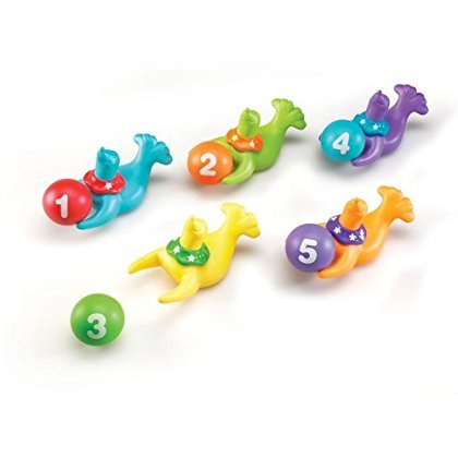 LER7309 Smart Splash?? Color & Count SealsDive in! These 5 seals love playing in the water table or tub for learning fun. Match the numbered balancing ball to the correct seal by checking the colors and stars on their collars. Soft plastic figures reinforce color and number recognition and early counting skills. Balancing balls friction fit between seals' flippers to build fine motor skills. Mold-resistant floating pieces store in mesh bag. Grades PreK+