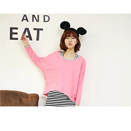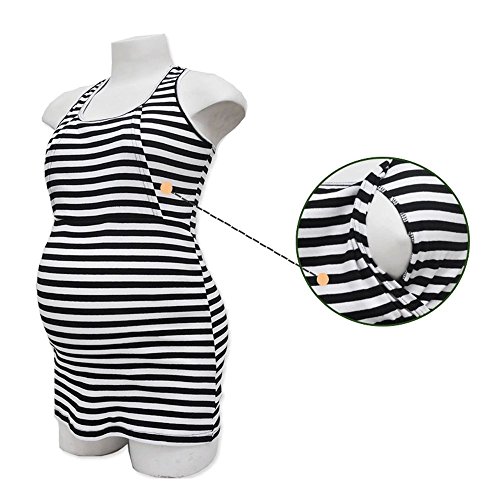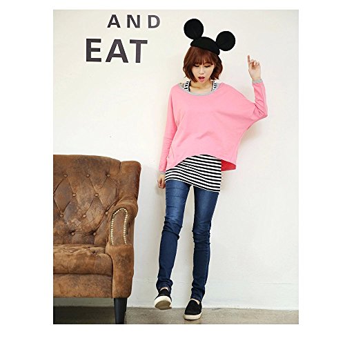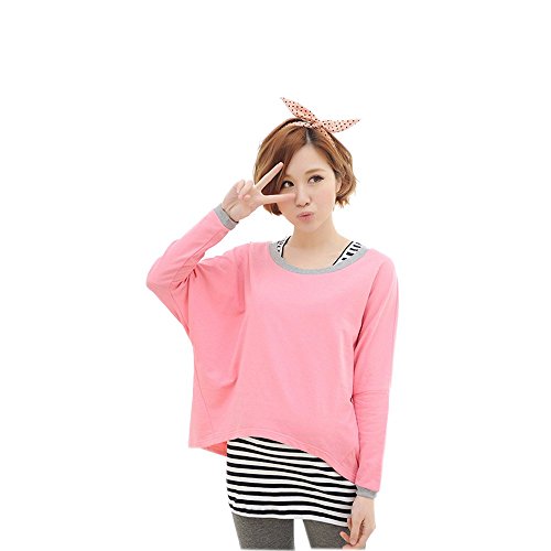 Lecpra (レクプラ) アンサンブル ボーダー マタニティ 授乳服 グリーン ピンク ネイビー イエロー ( フリーサイズ ) 長袖 タンクトップ (桃)