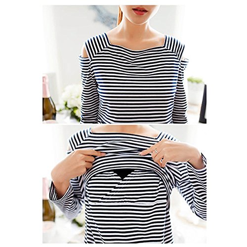 Lecpra (レクプラ) トップス ボーダー マタニティ 授乳服 インディゴ ( M L XL ) 長袖