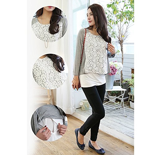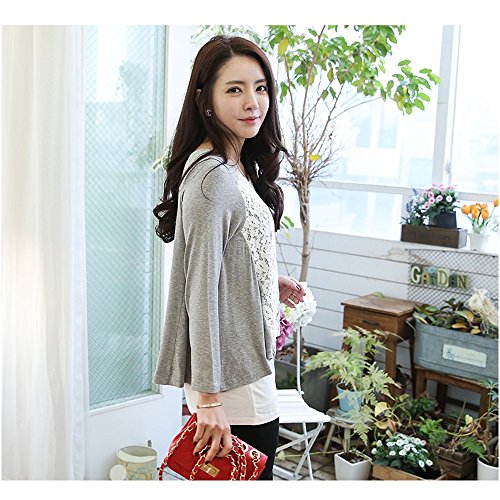 Lecpra (レクプラ) エレガント トップス マタニティ 授乳服 グレー ( L XL ) 長袖