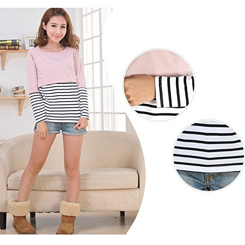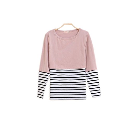 Lecpra (レクプラ) ボーダー ドッキング 授乳口付 トップス マタニティ 授乳服 ピンク オレンジ ( M L XL XXL ) 長袖 (XL, 桃)