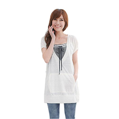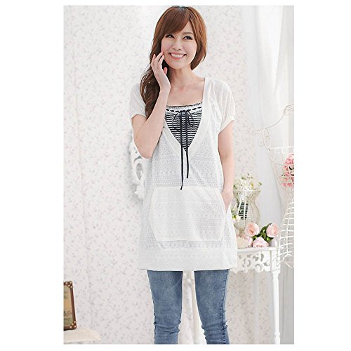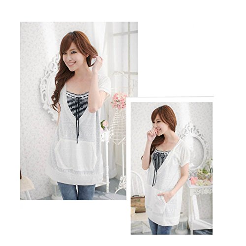 Lecpra (レクプラ) バイカラー ボーダー チュニック マタニティ 授乳服 ホワイト ピンク ( M L ) 半袖 (L, 白)