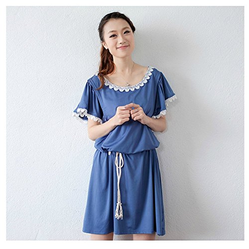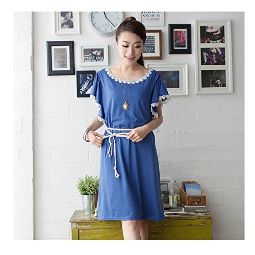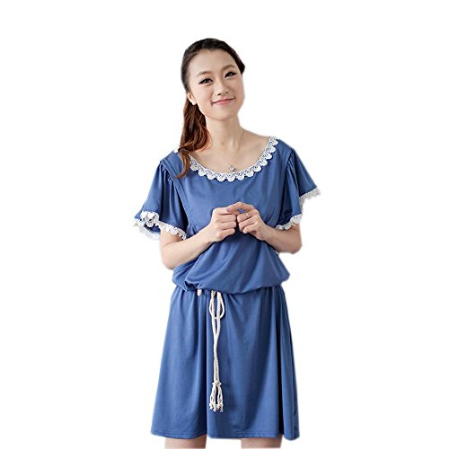 Lecpra (レクプラ) 授乳口付 ワンピース マタニティ 授乳服 ブルー ( M L ) 半袖