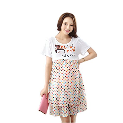 Lecpra (レクプラ) カジュアル 水玉 ドッキング ワンピース マタニティ 授乳服 ( フリーサイズ ) 半袖