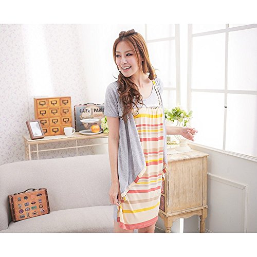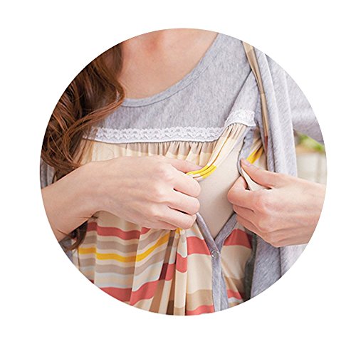 Lecpra (レクプラ) ライトカラー ボーダー ドッキング ワンピース マタニティ 授乳服 イエロー ピンク グレー ( M L ) 半袖 (M, 灰)