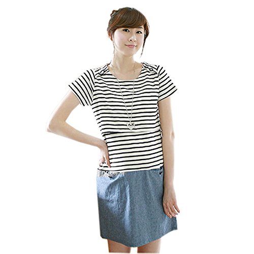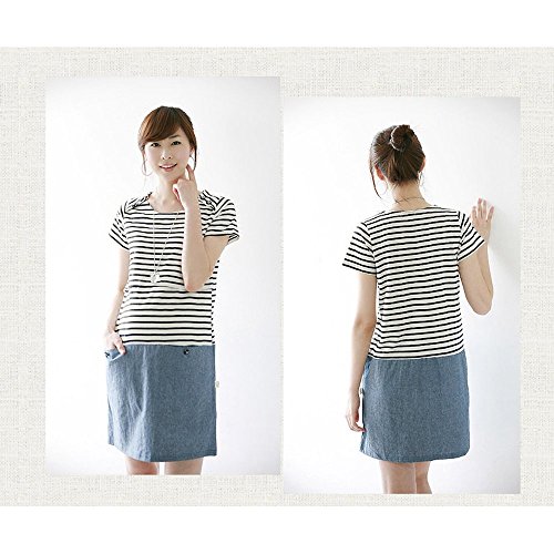 Lecpra (レクプラ) カジュアル ボーダー ドッキング ワンピース マタニティ 授乳服 バイカラー ( M L XL ) 半袖