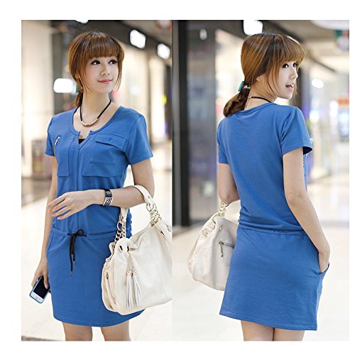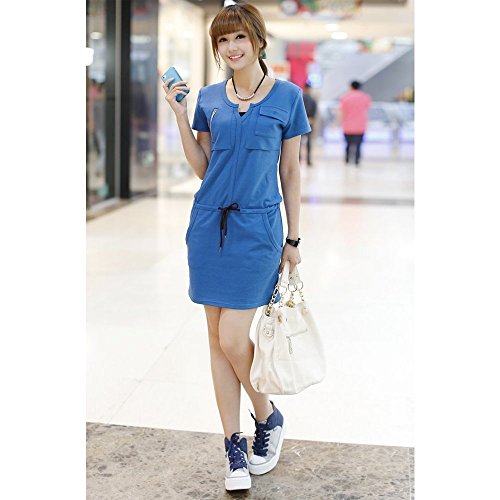 Lecpra (レクプラ) カジュアル ラウンドネック ワンピース マタニティ 授乳服 グレー ブルー ( L XL ) 半袖 (XL, 青)