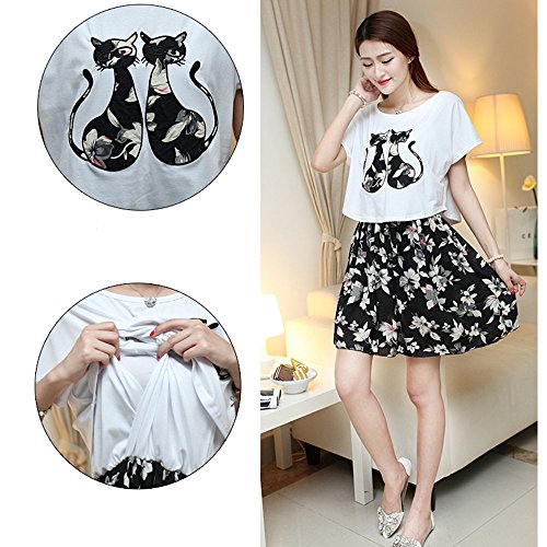 Lecpra (レクプラ) カジュアル 外着 ワンピース マタニティ 授乳服 ホワイト ブラック ( M L XL ) 半袖