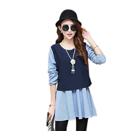 Lecpra (レクプラ) アンサンブル バイカラー ワンピース 授乳口付 マタニティ 授乳服 ネイビー ( M L XL ) 長袖 (XL)