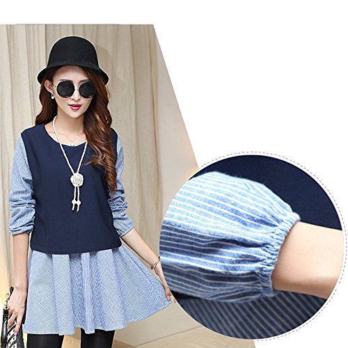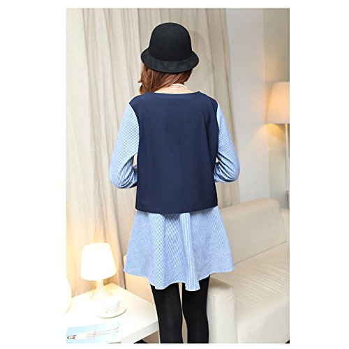 Lecpra (レクプラ) アンサンブル バイカラー ワンピース 授乳口付 マタニティ 授乳服 ネイビー ( M L XL ) 長袖