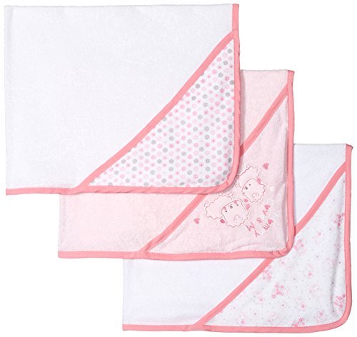 Nuby Set of 3 Baby Soft Terry Hooded Bath Towel Pink Girl [並行輸入品]