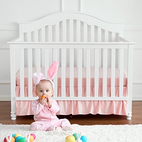 TILLYOU Baby Bed Percale Ruffled Crib Skirt 100% Natural Cotton Nursery Crib Bedding Skirt for Baby Boys or Girls 14 Drop/Pink [並行輸入品]