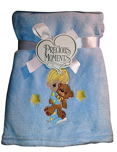 Precious Moments -Super Soft and Comfy Blue Fleece Baby Blanket Boy Hugging Teddy Bear [並行輸入品]