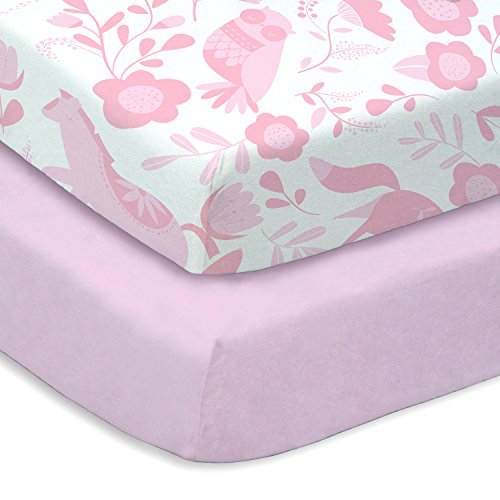 Pink Folk Animals 2 Pack Crib Sheet Set (2) Soft Microfiber By Where The Polka Dots Roam [並行輸入品]