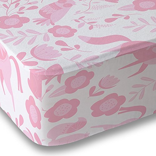 Pink Folk Animals Microfiber Crib Sheet By Where The Polka Dots Roam [並行輸入品]