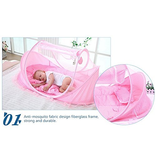 Baby Travel Bed Portable Baby Travel Tent Baby Mosquito Net Portable Baby Cots for 0-15 Month Baby (Pink) [並行輸入品]