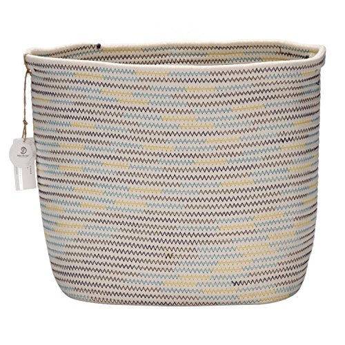 Sea Team 13 x 9 Square Natural Cotton Thread Woven Coiled Rope Storage Basket Bin Hamper with Totes for Nursery Kid's Room Storage [並行輸入品]