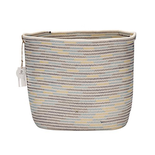 Sea Team 11 x 7 Square Natural Cotton Thread Woven Coiled Rope Storage Basket Bin Hamper with Totes for Nursery Kid's Room Storage [並行輸入品]