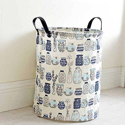 Pauwer Fabric Nursery Hamper Canvas Laundry Basket Foldable with Waterproof PE Coating Large Storage Laundry Hamper for Kids Boys and Girls Office Bedroom Clothes Toys(17.3x13.8Bottles) [並行輸入品]