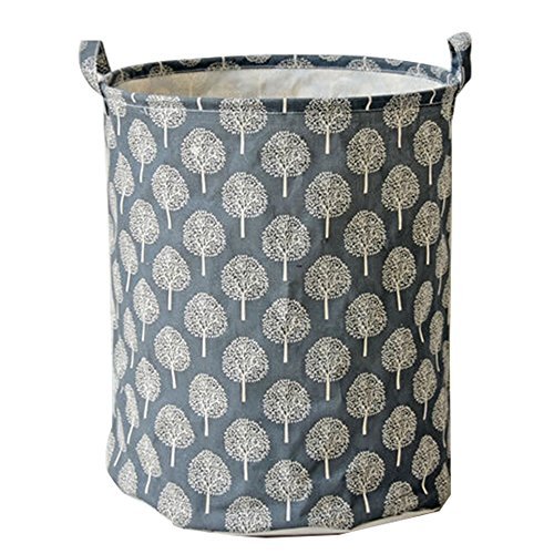 Pauwer Large Nursery Hamper Storage Basket 17.3x13.7 Fabric kids Laundry Hamper Folding with Waterproof PE Coating for Boys and Girls Toy Box/ Toy Storage/ Toy Organizer (Tree Gray) [並行輸入品]