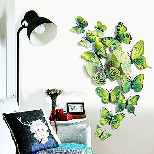 12-Piece 3D Green Butterfly Wall Stickers DIY Art Decor Crafts For Hallowmas Thanksgiving Christmas New Year Decor Nursery Classroom Offices Kids Bedroom Bathroom Living Room Magnets And Glue [並行輸入品]