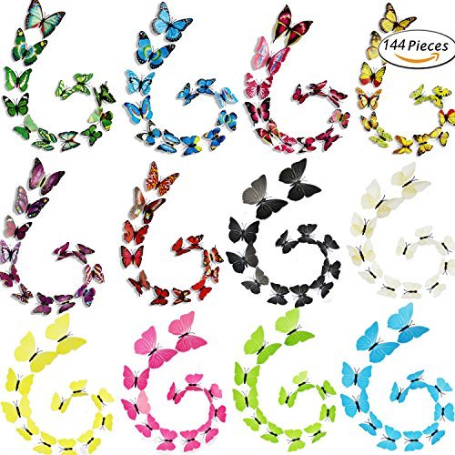 IDEASY 144 PCS 3D Crafts Lively Butterfly Removable Mural Stickers Wall Stickers Decal for Home and Room Decoration 12 Colors with 1 Sheet of Dot Glue Stickers Per Pack [並行輸入品]