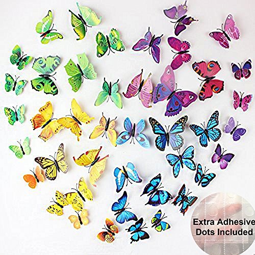 ElecMotive 60 Pcs 5 Packs Beautiful 3D Butterfly Wall Decals Removable DIY Home Decorations Art Decor Wall Stickers & Murals for Babys Bedroom TV Background Living Room (60 pcs in 5 Colors) [並行輸入品]