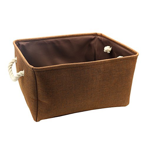 Kernorv Brown 100% Natural Cube Linen Collapsible Square Organizer Basket for Shelves with 2 Rope Handles Storage Bins for Nurser Closet Toys Laundry Bathroom Office Car [並行輸入品]