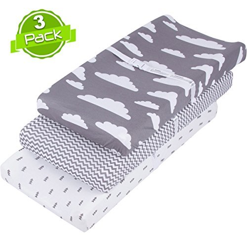 Changing Pad Cover Set | Cradle Bassinet Sheets/Change Table Covers for Boys & Girls | Super Soft 100% Jersey Knit Cotton | Grey and White | 150 GSM | 3 Pack [並行輸入品]