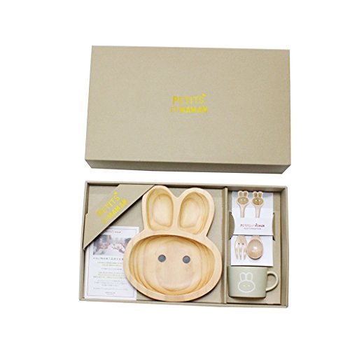 Petits Et Maman Gift Set: Wood Rabbit Plate Wood Silverware Ceramic Cup [並行輸入品]