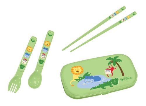 green sprouts Safari Friends Cutlery Set Green 3 Years and Above (Discontinued by Manufacturer) [並行輸入品]