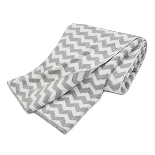 American Baby Company 100% Cotton Sweater Knit Blanket Gray Zigzag [並行輸入品]