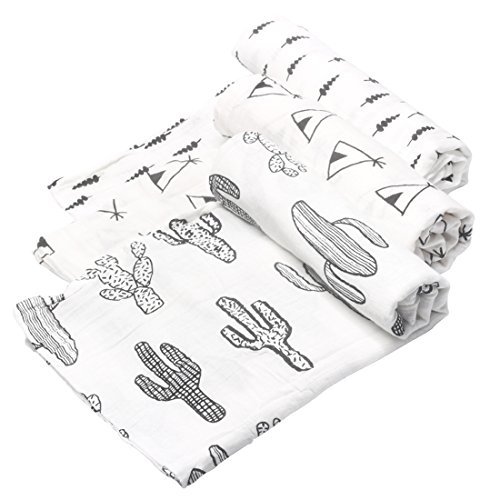 Kolamom Baby Muslin Swaddle Blankets 3 Pack 47x47 Inches Large Nursery Swaddling Blanket Shower Gift Sets Breathable Soft Cotton for Boy for Girl Cactus Set [並行輸入品]