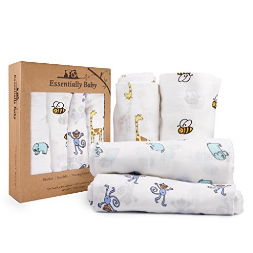 Bamboo Baby Swaddle Receiving Blankets - Super Soft and Cool- Keep Infant Safe with Natural Anti-Bacterial Breathable Bamboo Muslin! Easy Care Burp Cloth Baby Shower Gift (4 XLarge- 47x47) [並行輸入品]