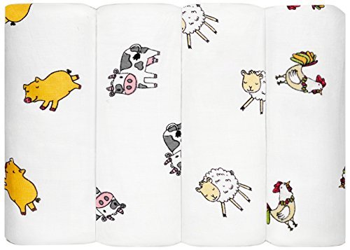 Swaddle Blankets - Cotton Muslin Newborn Baby Gifts Unisex Gender Neutral Baby Shower for Boy Girl Large 47 inch 4 Count Pack Gift Box Set Stroller Blanket Expectant Mother Farmyard Collection [並行輸入品]