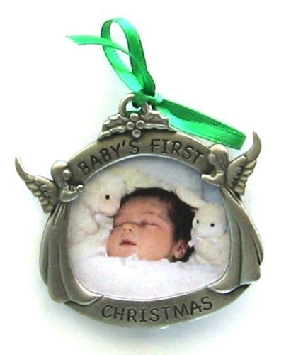Gift Boxed - Pewter BABY'S First 1st CHRISTMAS Photo ORNAMENT - 2 KEEPSAKE - Christening SHOWER Gift [並行輸入品]