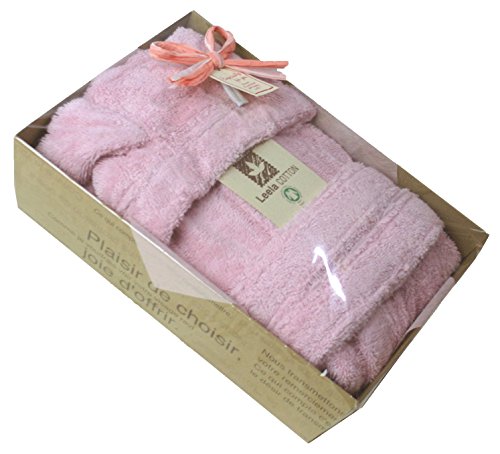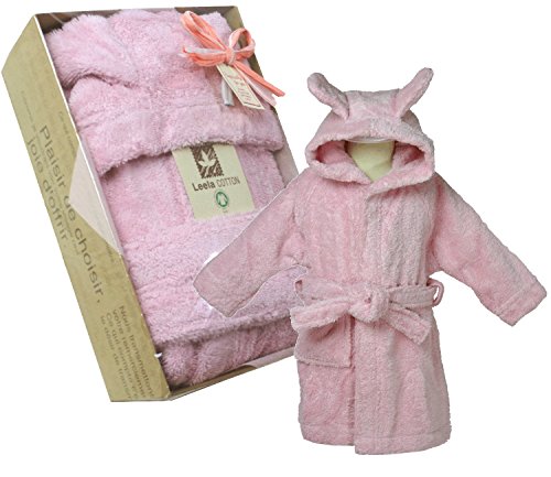 - 出産祝いの贈り物にオーガニックコットンのベビーバスローブ。 GOTS認定の安全な染料で染めた淡いピンクは女の子に贈る出産祝いぴったりです。