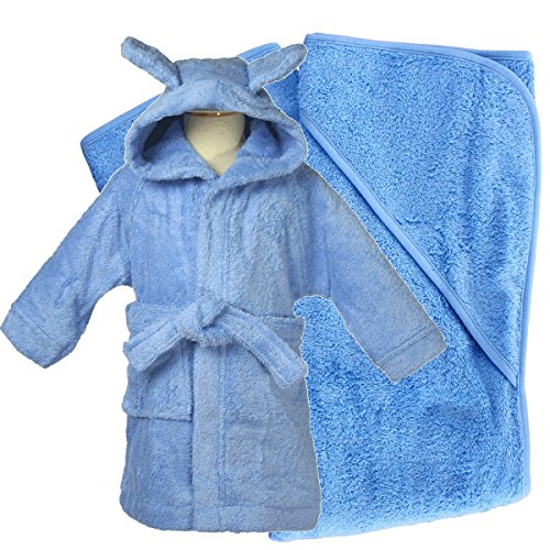 オーガニックコットン ベビーバスローブ&おくるみセット (74/80(80cm), ブルー)