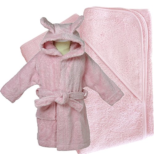 オーガニックコットン ベビーバスローブ&おくるみセット (86/92(90cm), ピンク)