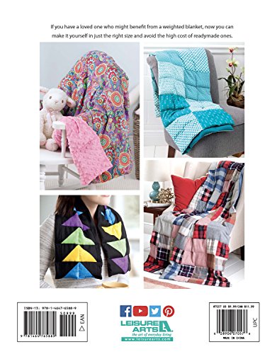 Easy Weighted Blankets from Leisure Arts makes it simple to create therapeutic quilts in just the right size for children and adults and avoid the high cost of readymade ones. Many people find a gentle touch to be comforting, so it's no surprise that weighted blankets are becoming popular for helping with anxiety, sensory problems, restless legs, autism, and other disorders. Designs include Super Simple, Teal Squares, Charm Squares, Plaid Flannels, Rail Fence, Soccer Balls, Patriotic, Lap Blanket, and Neck Wrap. Most projects include tables of supplies and measurements for making multiple sizes for youth and adults.