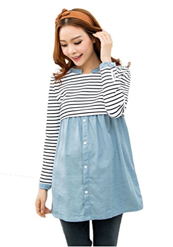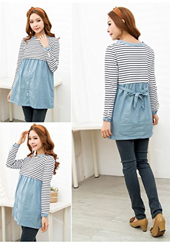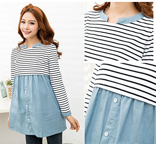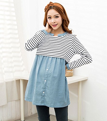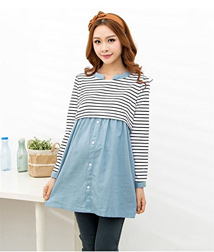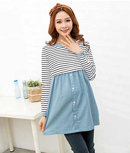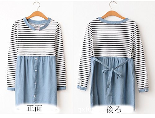 (レモンツリーセブン)Lemon tree7 レディース ワンピース ボーダー マタニティー 産前 入院 産後 前開 授乳口付き 入院用 レディース コットン 長袖 ルームワンピ 長袖 ワンピース 妊婦服