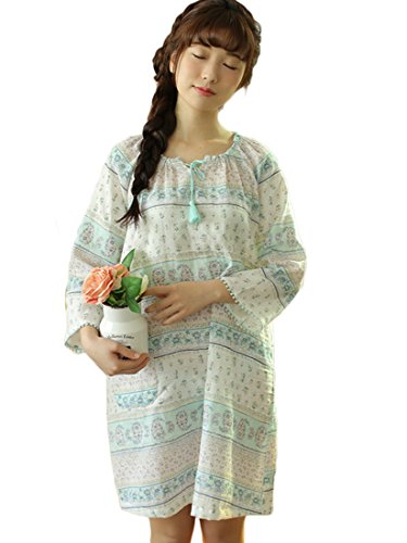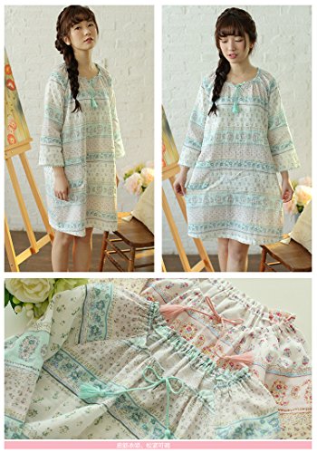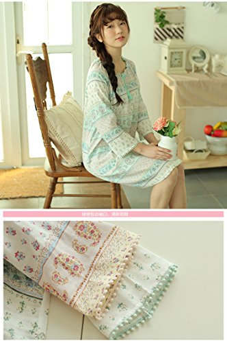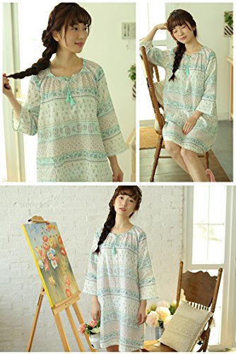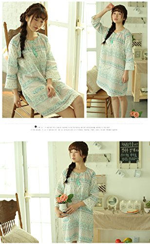 (レモンツリーセブン)Lemon tree7 レディース ネグリジェ 長袖 ワンピース 春 夏 ロング フレア 旅行 海 マタ二ティ 無地 綿100% 可愛い 花柄 レース フリル ルームワンピース グリーン S