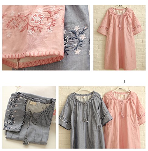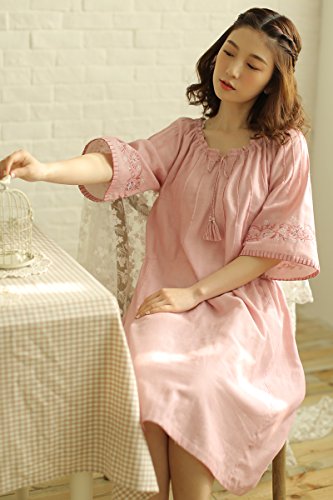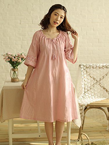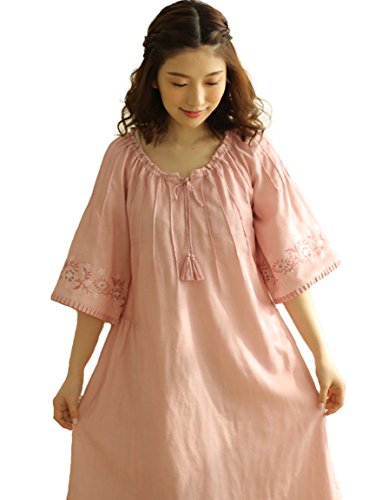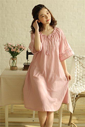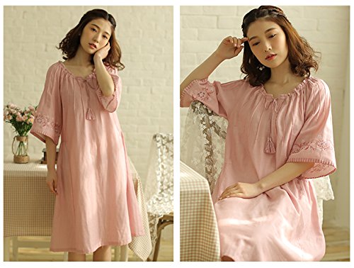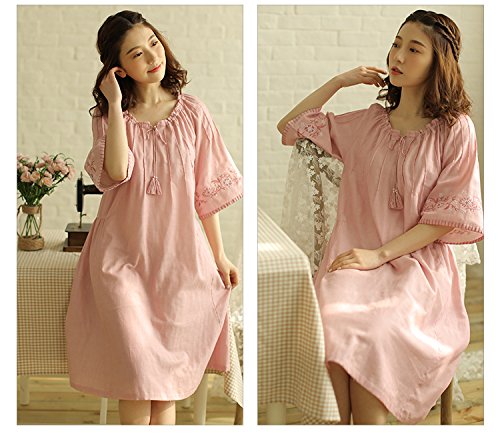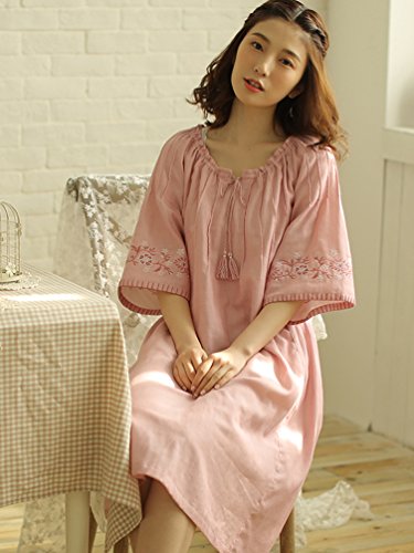 (レモンツリーセブン)Lemon tree7 レディース 刺繍 綿100% ネグリジェ 半袖 ワンピース お洒落 夏 ロング フレア 無地 可愛い レース フリル ルームワンピース ゆったり ピンク L