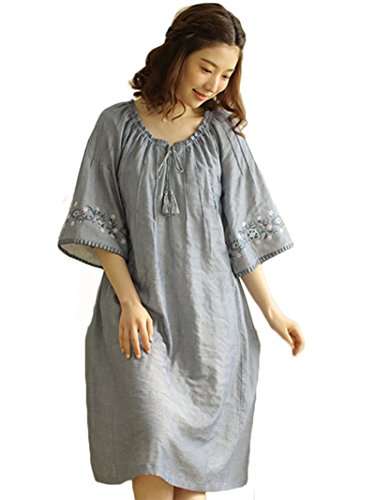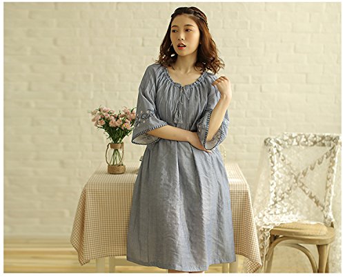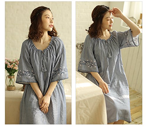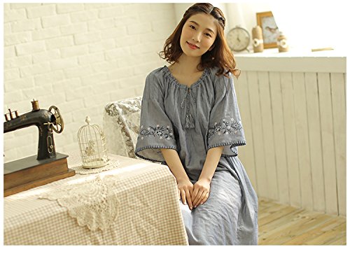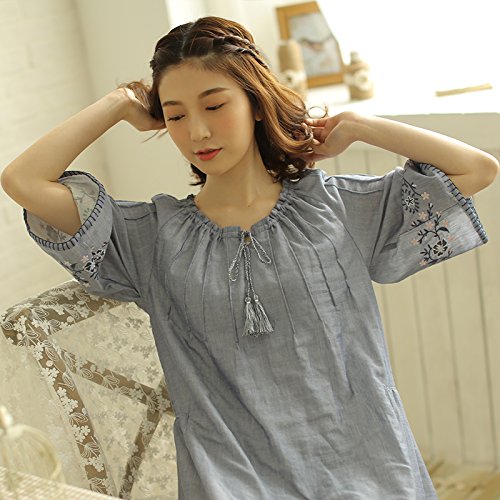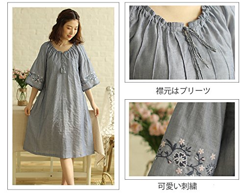 (レモンツリーセブン)Lemon tree7 レディース 刺繍 綿100% ネグリジェ 半袖 ワンピース お洒落 夏 ロング フレア 無地 可愛い レース フリル ルームワンピース ゆったり ブルー L