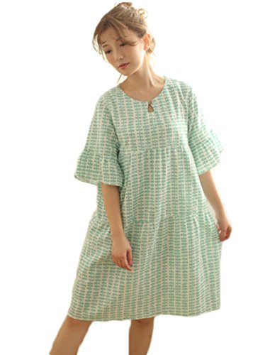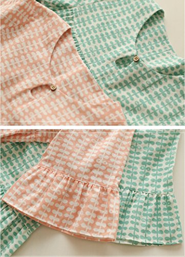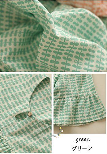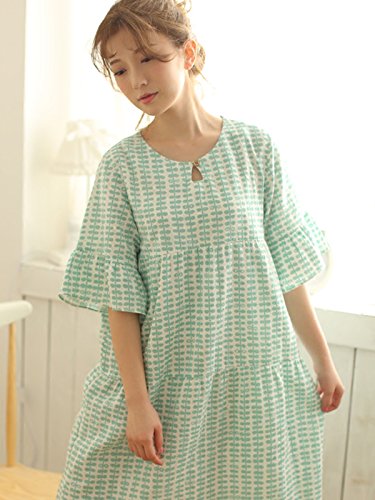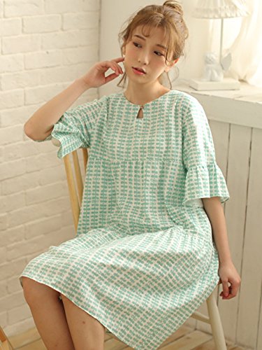 (レモンツリーセブン)Lemon tree7 レディース 綿100% ネグリジェ 半袖 ワンピース お洒落 夏 ロング フレア ピーナツ 可愛い レース フリル ルームワンピース ゆったり ピンク グリーン M
